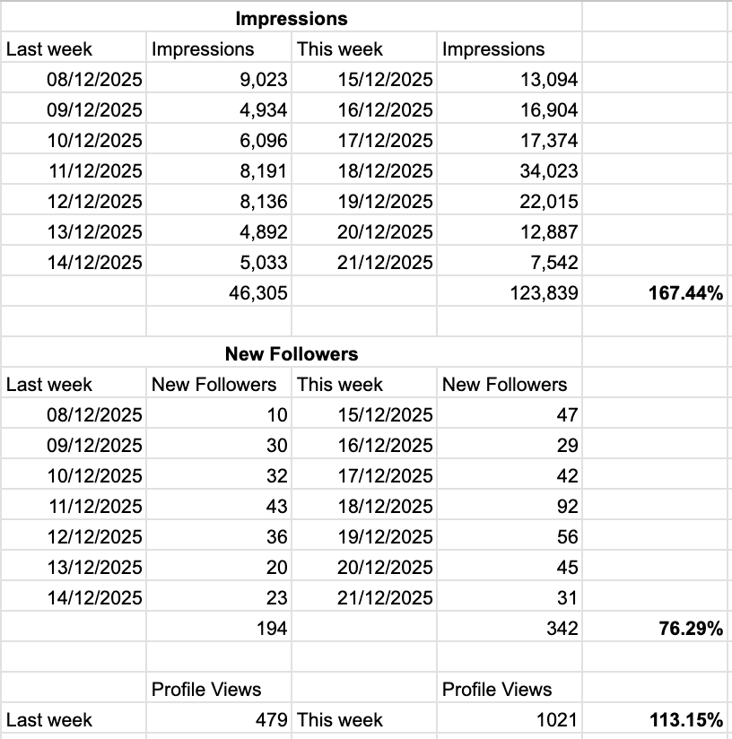 I doubled my LinkedIn and X posting schedule. Same quality standards, same process, just more volume.