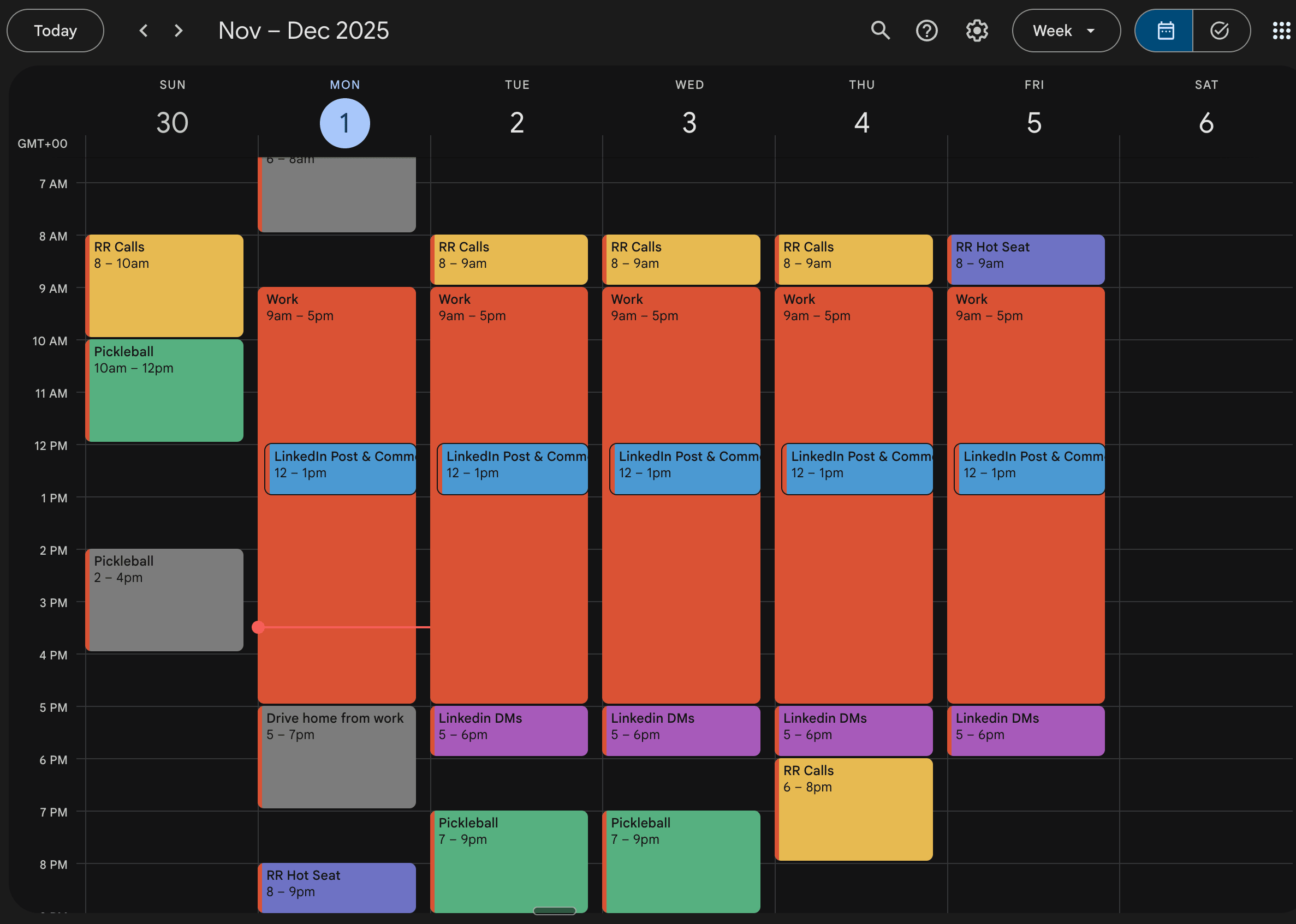 When that block comes up, you sit down and do focused, intentional work. Not scrolling LinkedIn pretending it's networking. Not watching another tutorial you won't apply. Actual work: building something, writing something, connecting with someone.